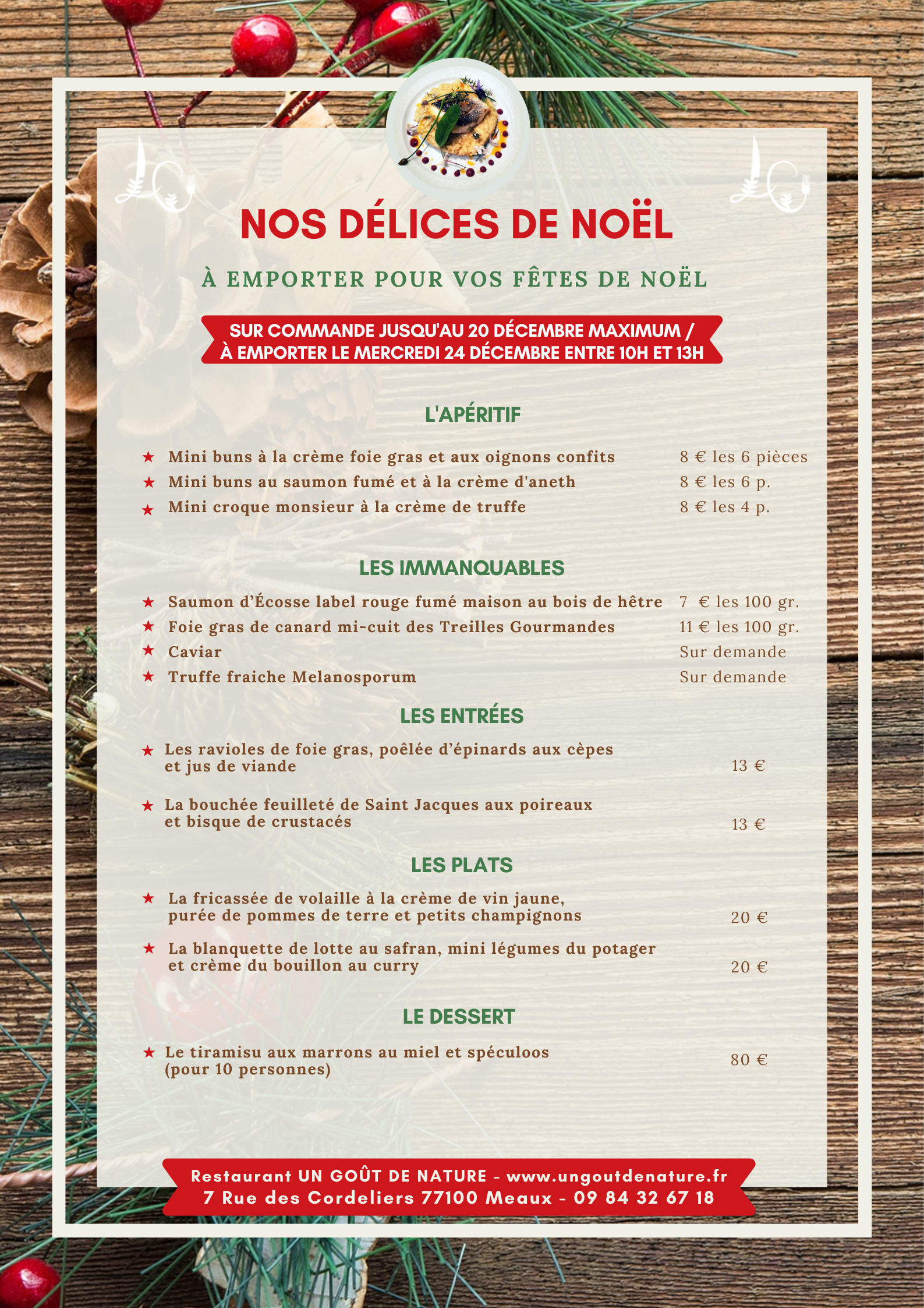 Vous pouvez nous contacter afin d’obtenir nos propositions de menu.