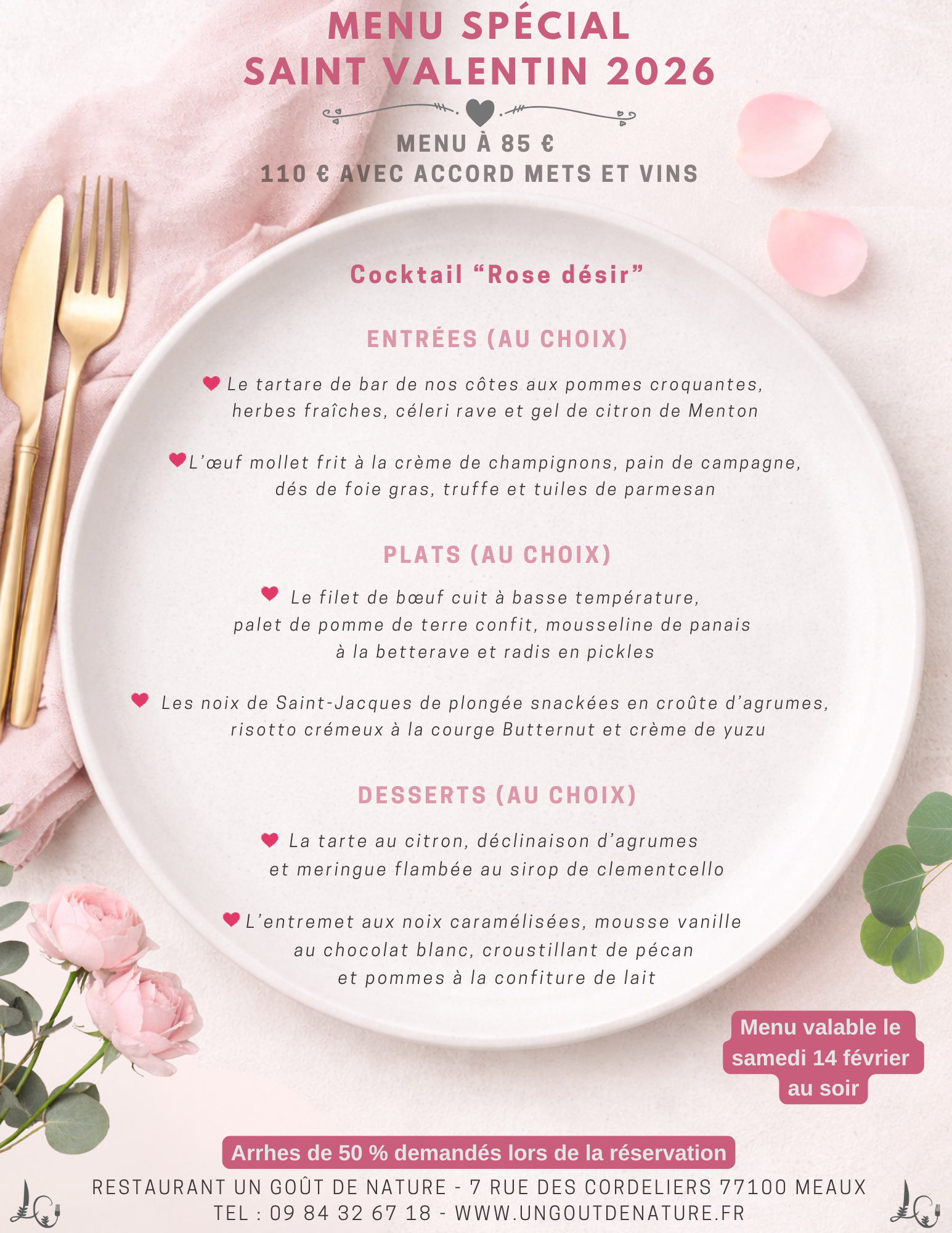 EXCELLENT Basée sur 854 avis Isabelle Marcou2025-06-01Trustindex vérifie que la source originale de l'avis est Google. Très bonne expérience, repas très bon. Terrasse très agréable. Serveurs sympa Karine Cauvin2025-05-31Trustindex vérifie que la source originale de l'avis est Google. Un lieu au top ! Une équipe très agréable et une cuisine délicieuse. Dominique Mignot2025-05-31Trustindex vérifie que la source originale de l'avis est Google. Très bon plats serveur très agréable je recommande vivement Audrey GILLOT2025-05-31Trustindex vérifie que la source originale de l'avis est Google. Toujours un plaisir de venir manger dans votre restaurant. Mon adresse préférée sur Meaux ! theresa assi2025-05-30Trustindex vérifie que la source originale de l'avis est Google. Incroyable coin de paradis de goût et de beauté ! On était installés a la terrasse. Les plats sont raffinés, bien présentés! L’instant À graver lors de votre visite à Meaux Paolina PISCINA2025-05-26Trustindex vérifie que la source originale de l'avis est Google. En famille pour la fête des mères nous avons passé un très agréable déjeuner Nous nous sommes régalés de l’entrée au dessert avec en prime un super service à la fois décontracté est très attentif. Vivement la fête des pères😊😋 Melanie Marchand2025-05-26Trustindex vérifie que la source originale de l'avis est Google. Belle découverte ! KIKI MARIES2025-05-25Trustindex vérifie que la source originale de l'avis est Google. L'un de mes restaurants préférés à Meaux. Tout est parfait. Nous nous régalons a chaque visite. Merci Corinne db2025-05-23Trustindex vérifie que la source originale de l'avis est Google. Nous avions réservé pour célébrer un évènement ! Serveur très agreable, aux petits soins pour que tout se passe au mieux pour nous, excellent déjeuner, nous reviendrons avec grand plaisir !